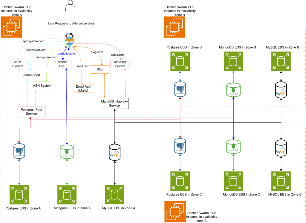 To address the costs of running a K8s setup above, I decided to test with Docker Swarm — a lighter orchestration alternative. The assumption was that I could still create a high-availability cluster at a fraction of the cost since Swarm provides simpler ways to handle volumes and memory.